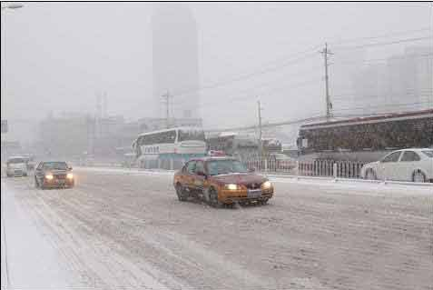雪后路滑,起步时若发现轮胎已被冻结于地面,应先用十字镐挖开轮胎周围的冰雪、泥土,以防损坏轮胎和传动机件。若驱动轮打滑,应铲除车轮下的冰雪,并在驱动轮下撒些干沙、煤渣、柴草等物,以提高附着性。